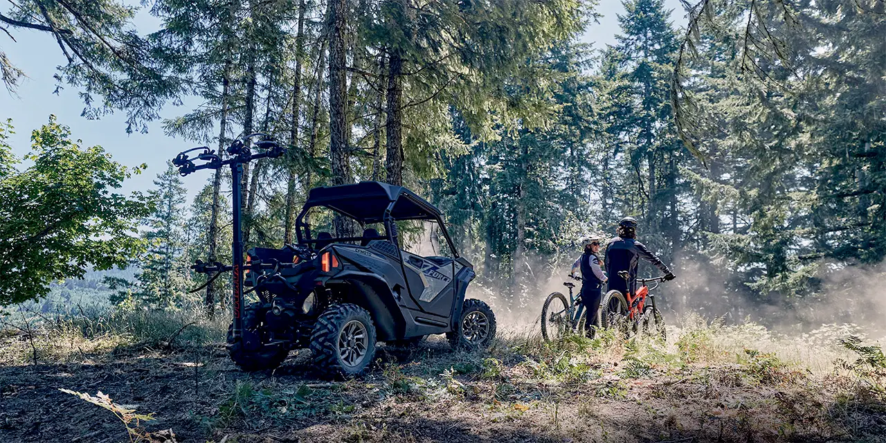 Un side-by-side de 50 pulgadas abre un mundo de posibilidades. No solo se ajusta entre los árboles, sino que también cabe en la caja de una camioneta de tamaño completo típica. Y lo único mejor que llevar un remolque es no necesitarlo.